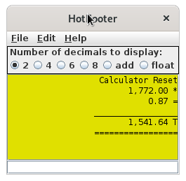 Multiplication and division work as with any algebraic device. Enter a number, an operator, and another number, and hit equals. Hot Footer puts all that on the tape and produces a total: